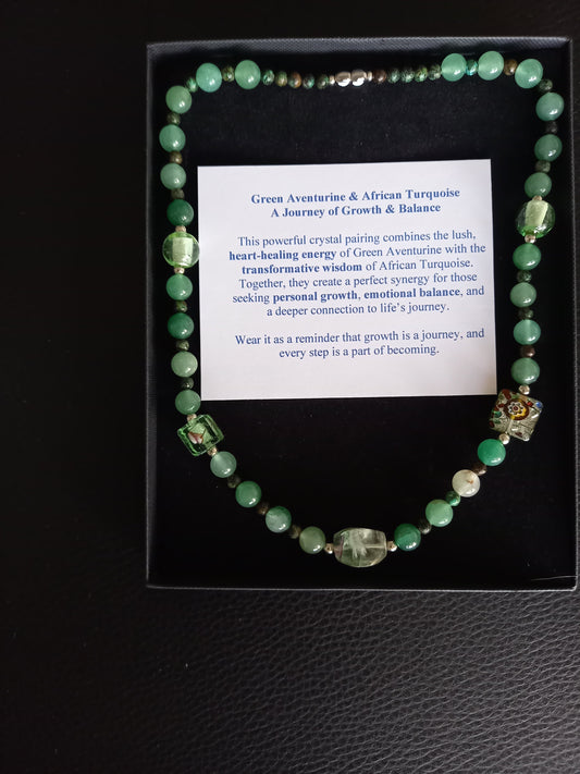 Green Aventurine & African Turquoise handmade beaded necklace (50 cm)