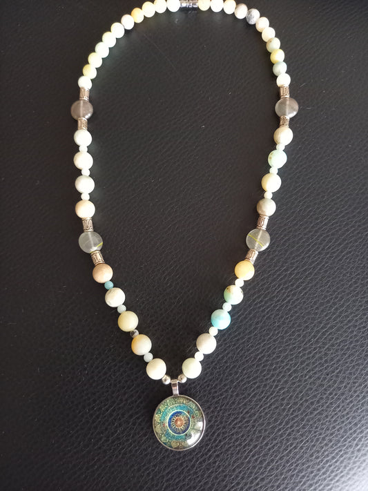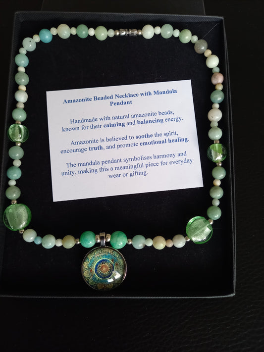 Handmade Amazonite Beaded Necklace with Mandala Pendant (50cm)